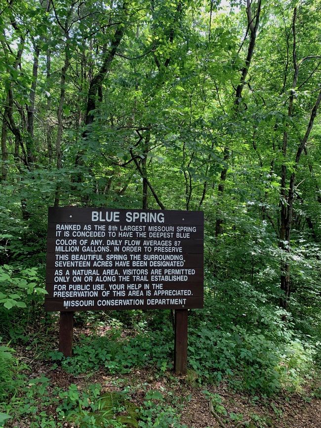 There are actually 2 Blue Springs in this area. The one I didn’t see is the smaller one on the Jacks Fork River and accessible by river. The larger, more famous one, is more than 310 feet deep, which is one of the deepest springs in the country. Blue Spring gushes at least 90 million gallons per day.
